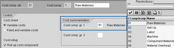Double-click on each cost component in turn on the right side of the screen. Assign the corresponding cost component group just created to each cost component (Figure 7).