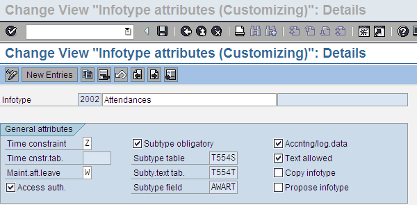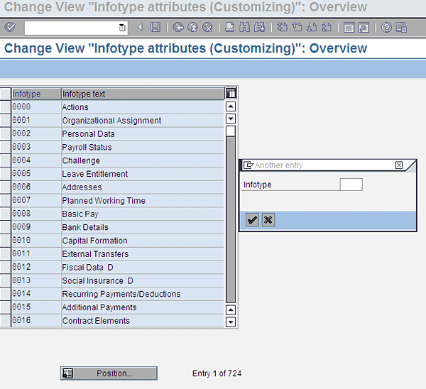 Click the Position… button and enter 2002 in the Infotype field. Then select Infotype 2002 (Attendances) and click the details icon