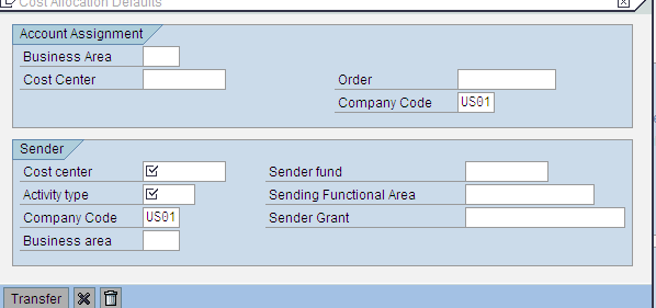 - The receiver cost centers (cost center and order) are debited in CO, and the sender cost center is credited.
