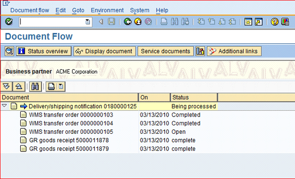 Document flow inbound delivery