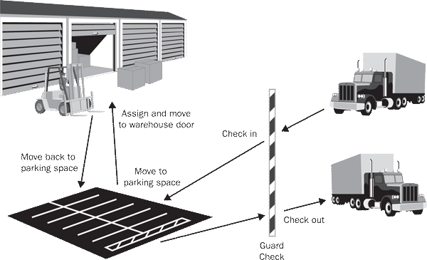 time. For example, from the check point you can direct a vehicle in the yard to a parking space via an RF interface. Use