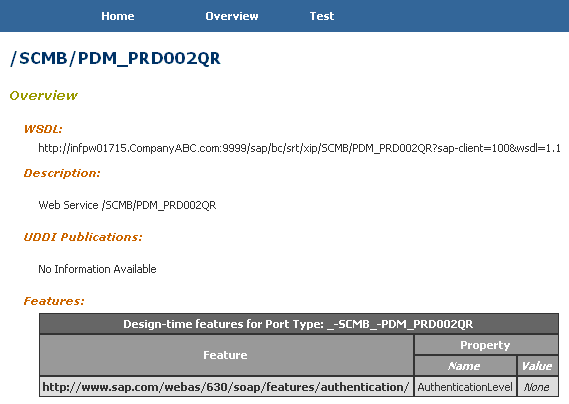 On this page, the WSDL link is provided. From here, you can test the selected service. Click the Test link, which takes you to the page that lists all available Web service operations (