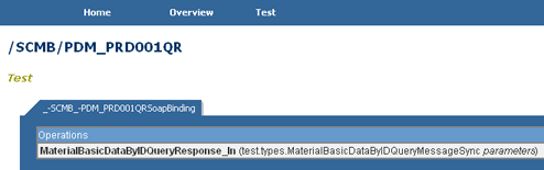 Among the various facilities and tools provided by SAP for Web service design and testing is the familiar Web Services Navigator from SAP NetWeaver Application Server (SAP NetWeaver AS). If you have deployed your Web service on SAP NetWeaver AS, the easiest way to test your Web service is by using the Web Service Navigator at https://<was-hostname>:<port>/wsnavigator (by default the port 50000). Select a service from the list (e.g., /SCMB/PDM_PRD002QR, which is the technical name of the Find Material by ID and Description Web service shown earlier in