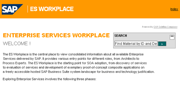 SAP provides a central place where you, the developer or architect, can easily collect information about Web services and enterprise services — the ES Workplace.