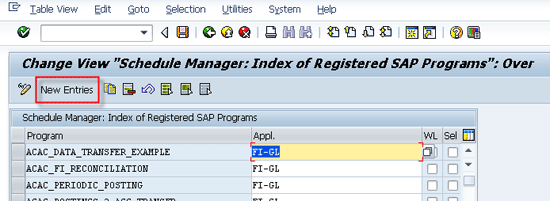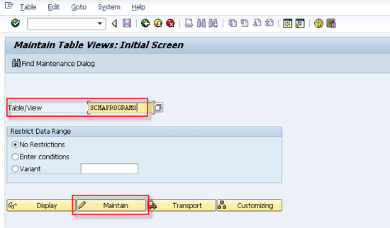 The prerequisite is to register the custom-developed program for the Closing Cockpit into table SCMAPROGRAMS. Execute transaction SM30 or use cockpit transaction CLOCOC and follow menu path Goto > Register Program for Closing Cockpit. Enter the table name as SCMAPROGRAMS. Click the Maintain button (Figure 1).