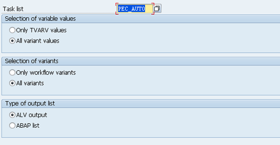 Applying SAP Note 1338505 (SCHEDMAN: Automatic transport of report variants) provides you with a program called ZSCMA_TRANS_BOX. This program enables you to go to the selection screen and enter a task list name (Figure 14).