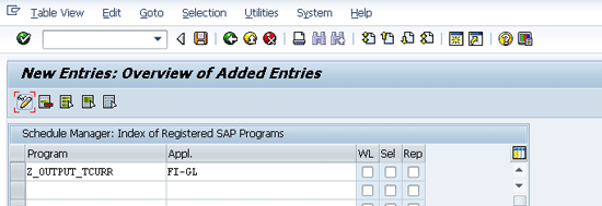 On the next screen, maintain your custom-developed program and application area as CUSTOMER or a specific relevant application area (e.g., FI-GL as shown in Figure 3). Save the changes to your transport request by clicking the save icon. (The changes done here are client independent, so it applies to all clients of the same SAP system immediately.)