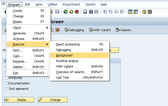 If you are using dynamic variables in your variant, make sure that SAP Note 1844130 (https://service.sap.com/sap/support/notes/1844130) is also implemented in your system correctly. The changes in this SAP Note make sure that the variants of your custom-developed program are copied into a temporary variant with the specific values of dynamic variables available at the time of execution or scheduling. You then execute the custom-developed program with this temporary variant to reflect the correct values. The boxes for Test Run and Activity options appear on the selection screen (Figure 4) only when you implement SAP Note 1075752 (https://service.sap.com/sap/support/notes/1075752) in your system.