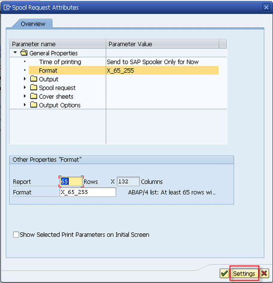 In the next screen (Figure 8) set the desired parameters for the printing. Enter the desired formatting (e.g., X_65_255) and click the Settings button.