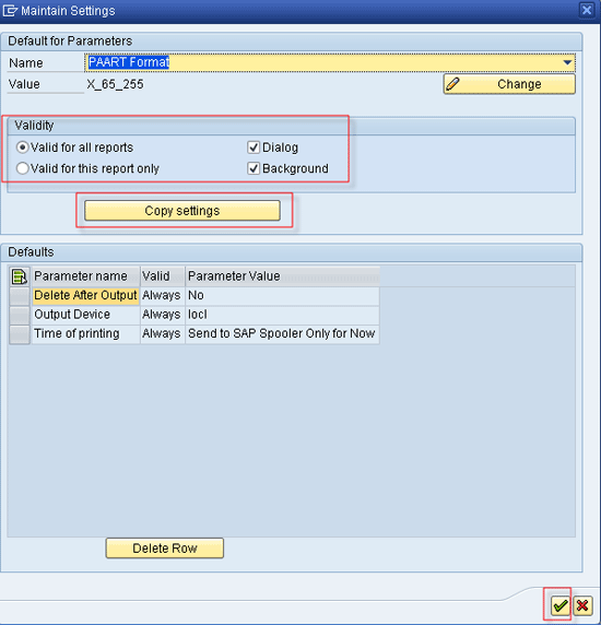 To change the parameters setting for all the users centrally, you need to execute program RSPRIPARADMIN in transaction SE38. On the selection screen, enter the report name and the desired format. Click the Copy button (Figure 10).