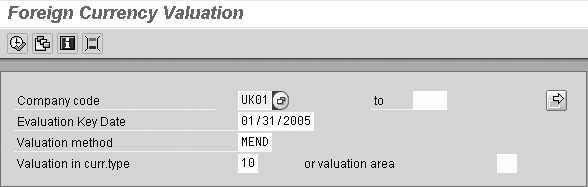 Currency type 10 revaluation is the difference of the open payables/ receivables balance of the current periods, using the current exchange rate, less the original or prior periods. You select the original or prior periods depending on whether you calculate incremental or cumulative balances. Currency type 30 revaluation is the difference of the current period’s valuated balance of open payables/receivables less the original or prior periods. You can execute the foreign currency revaluation at month-end to post currency type 10 and type 30 revaluations via transaction code F.05.