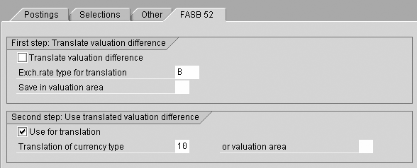 F.05 valuation areas: currency type 10 revaluation FASB 52 tab