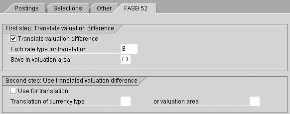 This method of foreign currency revaluation is the most common strategy implemented by companies that have foreign currency open item postings that require revaluation, but it is not FASB 52 compliant. It configures the account assignments in one area that populates table T030H, an account determination table for exchange rate differences.