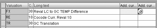 F.05 valuation areas: currency type 30 revaluation FASB 52 tab