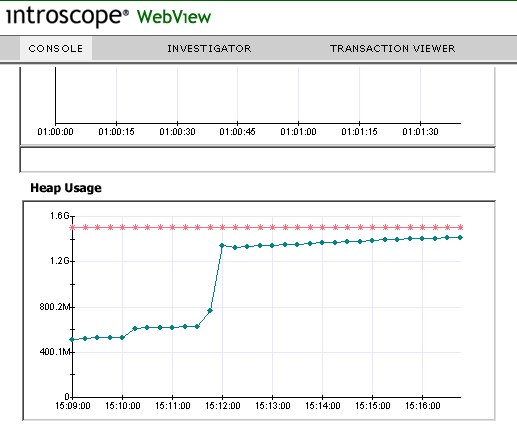 Introscope WebView console view of heap memory usage