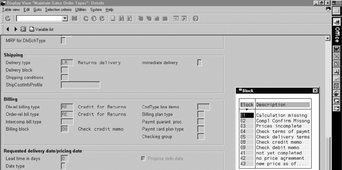 Parameters in transaction VOV8 to maintain for returned sales orders — note that the SD document category for returns is H
