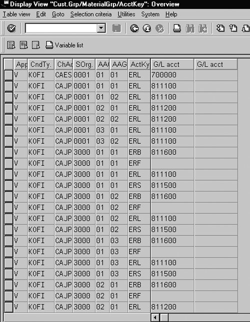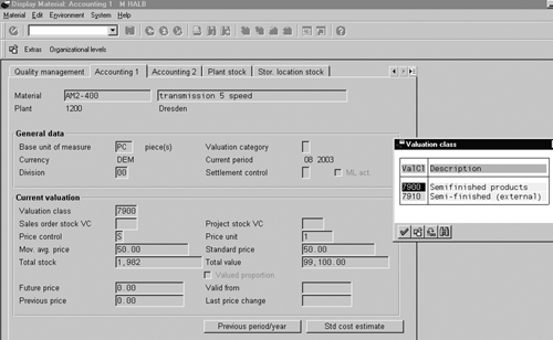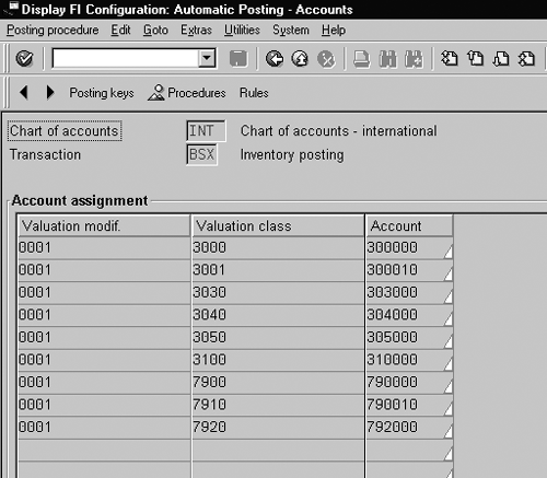 Mapping screen for Valuation modif., Valuation class, and the Account value