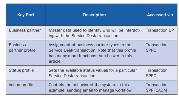 Before I cover the details, I must note that that I am only going to cover a small part of the capabilities of the Service Desk. My example will show you how to set up email alerts based on the specific status values of a Service Desk transaction. However, you can configure hundreds of actions to automate work in the Service Desk. As I move through the configuration, I’ll point out some of the ways that you can extend beyond the scope of this article.