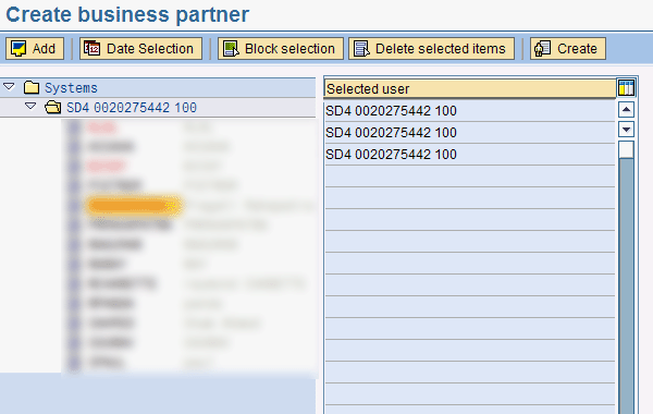An alternate way to create business partners is to use transaction BP_GEN. For this process to work, the user IDs have to already be set up with address and email information in transaction SU01. From BP_GEN, click the Add button to add the SAP Solution Manager system to the systems list. In Figure 8 you can see that I am adding MS4 to the system list.