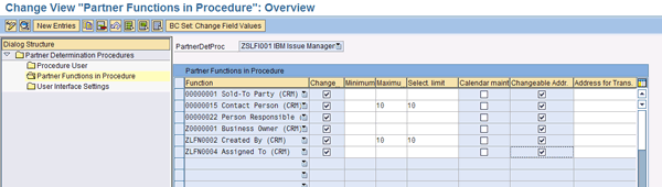 Click the New Entries button to add the partner functions to the partner procedure. Add the partner functions until your screen looks like Figure 14. Note that both Change and Changeable Address are checked.