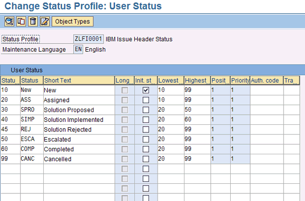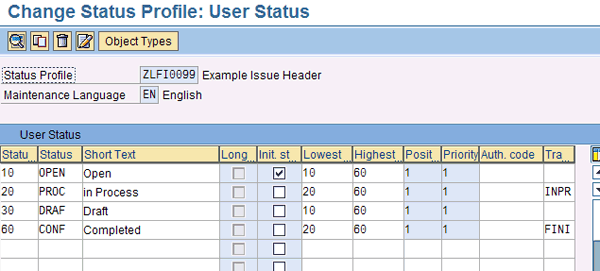 If you double-click one of the status codes, it takes you to the transaction control configuration. This is where potential problems hide. However, by copying the status profile, you get these set for you.