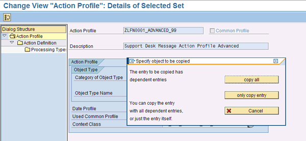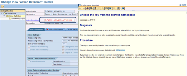 You will probably see a message alerting you that you must choose a name from the allowed namespace. This is because the profile is copying the actions as well and assigns them to the same name by default. I usually just change the first letter to Z or Y and move on (Figure 25).