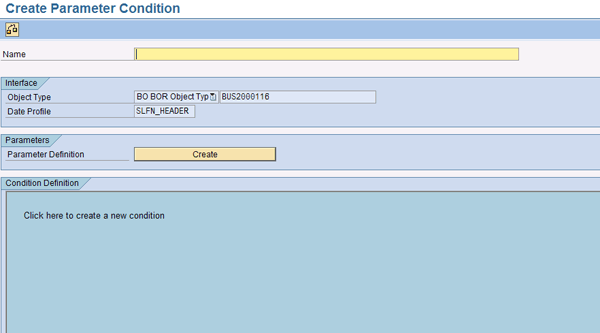 Figure 36 shows the edit screen for a brand new condition. Note that you need to enter a Name for the condition and click the text “Click here to create a new condition” to open the condition editor (you have to click on the actual text; there is no button to launch the condition editor).