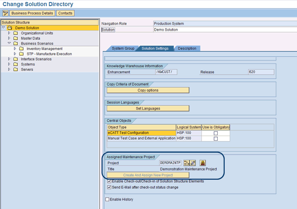 Click the Copy button to create the maintenance project and assign it to the solution. The system returns you to the Solution Settings tab with the maintenance project officially assigned (Figure 10).