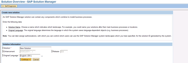 Enter the name of the solution and the language. Click the Continue button and the Solution Landscape maintenance screen appears (Figure 3).
