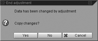 If you want to make all the changes that R/3 presents at once, it is easiest to use the All button. Once you have selected the button you require, R/3 automatically updates the view of the data to show that it has made the changes and completed the adjustment.