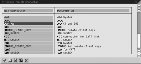 Press F4 to access the drop-down list to compare the RFC connections between your logon client and other SAP R/3 systems. As shown in Figure 3, select the SAP standard client 000 from the drop-down list by highlighting it and clicking on the green check mark icon to begin the comparison.