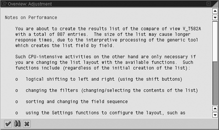 A helpful use for this table comparison is to compare your customized configuration with the standard entries from client 000 (the standard-delivered SAP system).
