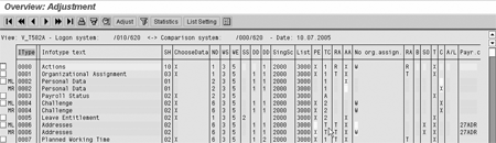 While viewing the differences in table settings is practical, this tool’s adjustment functionality is even more useful. The adjustment function copies the configuration settings from a different client into your logon client. It can also replicate your configuration from your development box to your sandbox, or from your production box into a testing or training box.