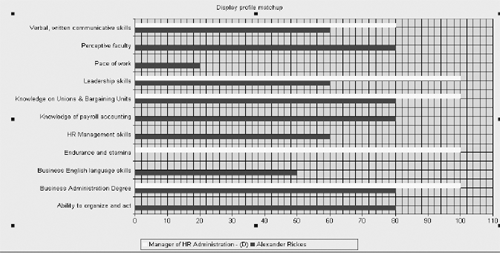 The user-friendly search method allows you to easily identify internal talent. One function called the SAP Profile Matchup (Figure 2) allows you to compare the qualifications and requirements of objects (employees [P], jobs [C], and positions [S]) against each other. You can compare an employee’s qualifications with the requirements of a potential position this employee is interested in to see if he or she meets the requirements and to determine how well-suited the employee is to the position.