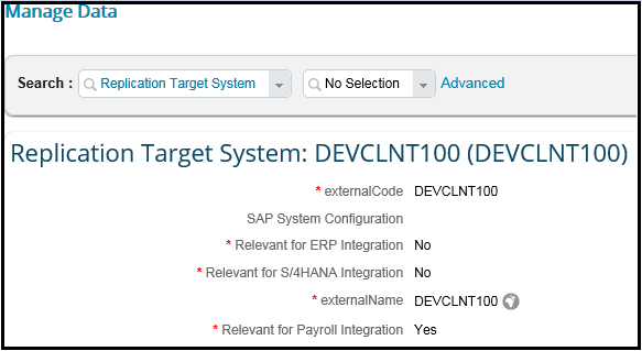 Next, you have to assign the target SAP ERP HCM system in Employee Central. To get your SAP ERP HCM client logical system ID, execute transaction code SSC4. After you have the SAP ERP HCM client logical system ID, go to the Employee Central system and create a new Replication Target System under Manage Data in Administration Tools. In Employee Central, follow these steps: Select Admininistration Tools and, under Company Processes & Cycles, click Employee Files and select Manage Data. In the Manage Data page, select Replication Target System from the Create field drop-down options. Then create and save the information from your target replication system as shown in Figure 6.