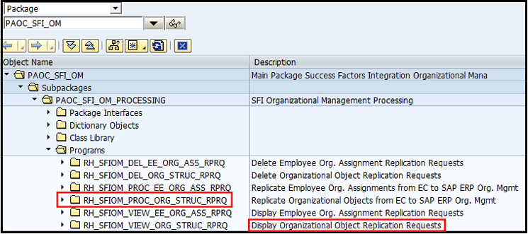 You can manually trigger the replication by selecting the object ID number row (in the EC Obj. ID column) and then clicking the Process Selected Requests button in the ribbon. This action calls the report RH_SFIOM_PROC_ORG_STRUC_RPRQ shown in Figure 8.