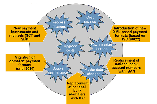 Besides the two new SEPA payment instruments, SCT and SDD, SEPA introduces the following additional changes: