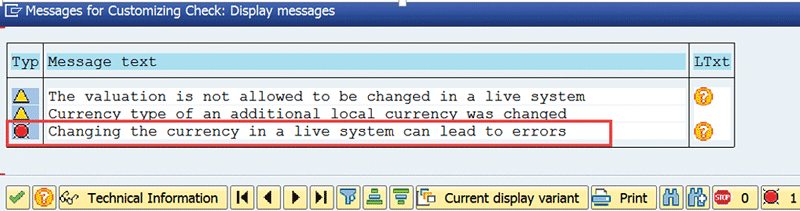 In a greenfield SAP system implementation, the currency settings shown in Figure 1 can be applied without issue. However, if the currency settings need to be changed in a production system containing transactional data, the system provides an error message. This error can only be resolved through SAP SLO. Moreover, data conversion needs to be performed for the SAP General Ledger balances, inventory, or asset values. Business owners of other applications might resist these changes due to the complexity of the required conversion.