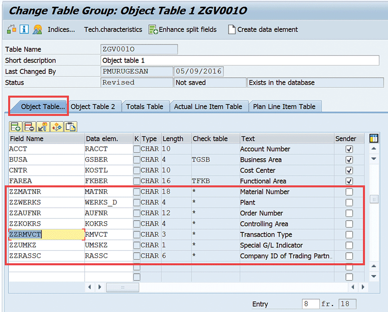 The fields added in the Object Table 1 are also automatically available in the Summary Table, Actual line Item Table, and Plan line item table. The creation of a table group can be completed by clicking the save icon. Before saving, the check functionality can be used to make sure there are no errors in the table creation. While saving this data, the SAP system can automatically create table indices and the tables are activated in the background. After you create the table group, the list of tables shown in Figure 6 is visible after you execute transaction code SE16 or SE16N.
