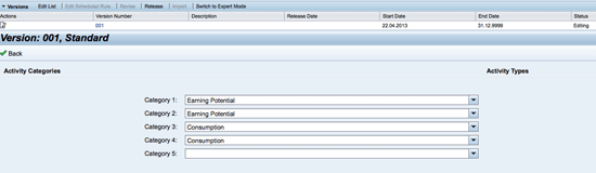 Select the reward rule group created in Figure 10 on the Hierarchy level (i.e., the loyalty program) and click the Create button. Figure 11 shows the version details of a reward group in the CRM WebClient UI.