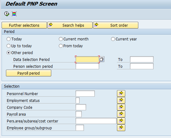 As already mentioned, the logical databases PNP and PNPCE provide a default selection screen with a set of input fields. First, let’s look at the default screen that appears in the PNP screen (Figure 1).