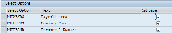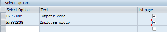 In this example, I have chosen to display only the Company code and the Employee group on the selection screen. This step is the same for both PNP and PNPCE report categories.