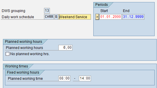 In order to use the work schedule for a certain period in infotype 0007(planned working time), daily work schedule CHRR must be assigned to a periodic work schedule. Then the work schedule must be generated for the right week.