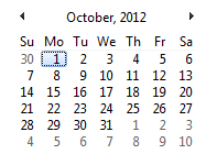 The next step is to check the calendar. On October 1, 2012, which is a Monday, the employee is absent (Figure 7). This means the system records six hours as a full day based on variant B. If the employee is absent on Friday, October 5, 2012, then system records eight hours as a full day of absence based on variant A.
