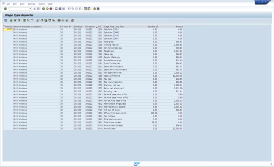 Often, extracting payroll results for comparison from the legacy payroll systems can provide a challenge. The legacy payroll system may have more limited functionality than the SAP payroll (otherwise why change?) making some types of comparison impossible. For example, a legacy payroll system might not store the equivalent to technical cumulation wage types (e.g., wage type /121 taxable pay, which stores a total value for all taxable elements), thereby making detailed tax comparisons more difficult. On some legacy payroll systems a flexible reporting tool equivalent to the wage type reporter may be available. If this is not the case then, budget permitting, you may be able to request the creation of a custom payroll results extract report on the legacy system. However, from experience I have found that often there is a reluctance to invest in a soon-to-be redundant payroll system. Consequently it may come down to seeing what standard payroll reports are already available on the legacy payroll system and choosing the best option.