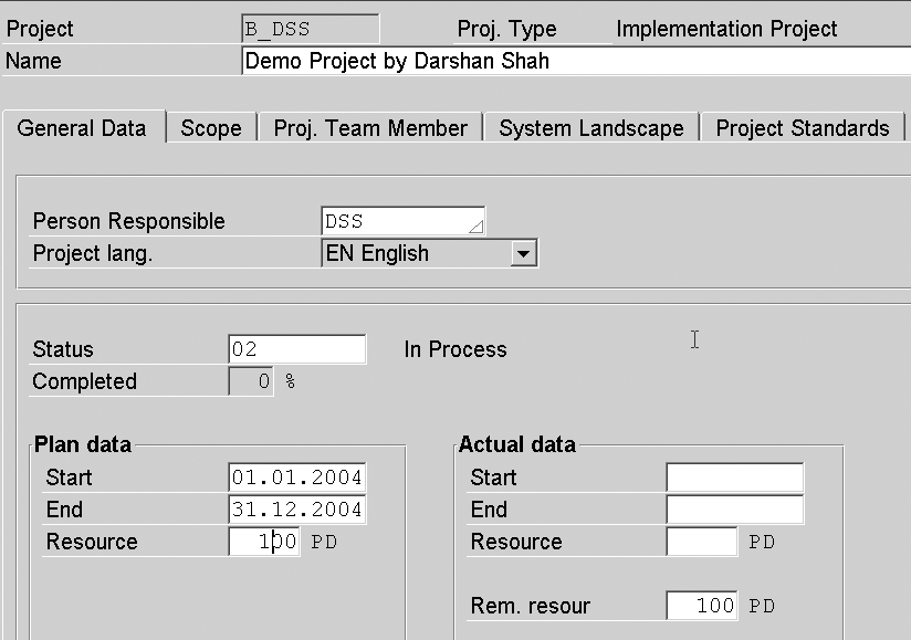 As you can see, the project information is the same as for the IMG projects you are accustomed to in R/3. If the project is created in Solution Manager and if your development system is linked to Solution Manager, then Solution Manager automatically creates an IMG project in R/3.