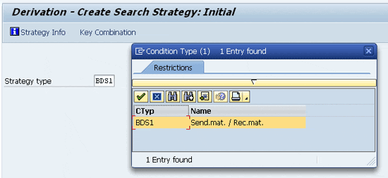 Figure 2 is the initial screen in which the standard strategy type option available is for the sender material or the receiver material key combination. This key combination enables the user to maintain not just the sender material’s information but also the receiver’s material. Place your cursor on the Strategy type field and press F4. The system brings up the condition type BDS1 to select. After you select BDS1 and press Enter, the system opens a pop-up screen (Figure 3).