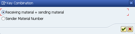 Figure 3 provides radio buttons to enable the user to select a combination of both receiving and sending material information on the same screen, and only sender material number information. For my example, I select the first radio button (Receiving material + sending material) and click the continue icon (the green check mark).