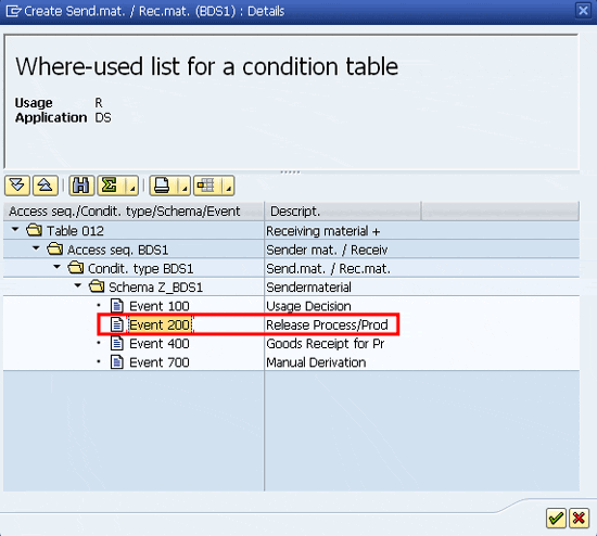 Now I click the condition usage icon or press F7 in Figure 10 and select Event 200 so that the system can perform batch derivation during the release of the production or process order. This is the same step that I had previously completed in Figure 6.