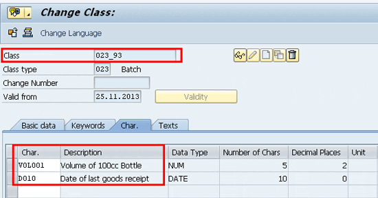 Although I do not cover how to create class or characteristics, it is important to understand how class and characteristics are linked together. To view the structure of class 023_93 and the characteristics associated with it, follow menu path Cross-Application Components > Classification > Master Data > Classes or use transaction CL02. In the initial screen that appears (Figure A), enter class 023_93 and also class type as 023 (for batch) and click the change icon (the pencil).